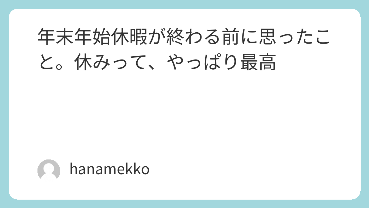 年末年始休暇が終わる前に思ったこと。休みって、やっぱり最高